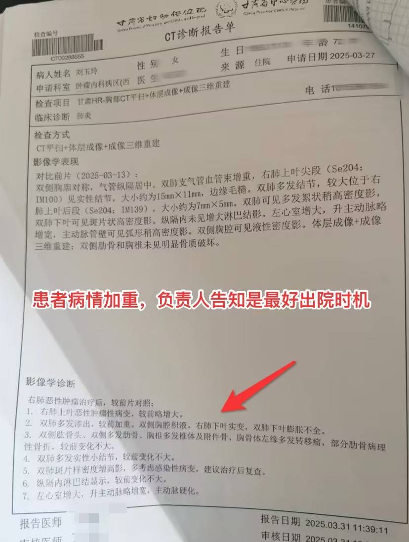 2025年3月16日,老伴因脑颅压再次升高住进熊某科室,此时李军已无财物可送,熊某态度也急转直下。住院仅七天,3月25日起,针对性治疗突然中断,一停就是九天。3月25日至27日,熊某以“担心腹泻”为由,让本就虚弱的老伴禁食三天,之后仅输注钾、钙和营养餐液,对肺癌核心病症完全置之不理。