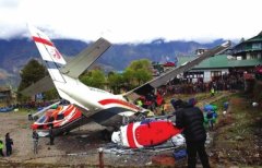 在尼泊尔卢卡拉机场拍摄的事故现...