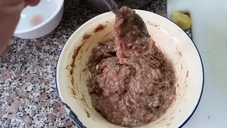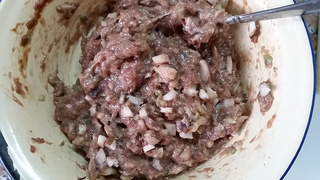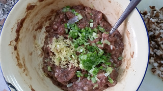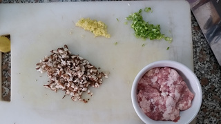 3 香菇、葱、姜剁碎,准备好肉馅。