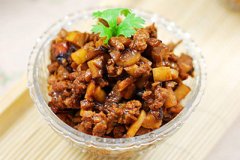 主料:猪肉馅适量 辅料:春笋适量 香菇适量 调料:色拉油适量 食盐适量 酱油适量 鸡精适量 葱适量 姜适量 蒜适量 八角适量 料酒适量 老抽适量 甜面酱适量 黄酱适量 笋丁香菇肉酱的做法 1.春笋洗净切丁备用。香菇去蒂,切成小...